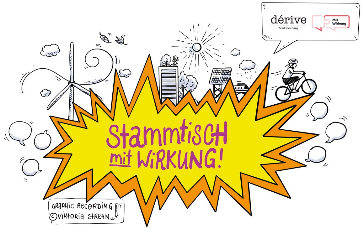 Das Büro für Mitwirkung der Stadt Wien will mehr Beteiligung für mehr Wiener:innen ermöglichen. Der ›Stammtisch mit Wirkung‹ in Kooperation mit dérive lädt engagierte Stadtmacher:innen aus Zivilgesellschaft, Politik und Verwaltung zum Austausch. Langfristig entstehen soll ein Raum für wertschätzende Verständigung und offene Diskussion. Das Ziel: Eine sozial- und klimagerechte Stadt mit lebendiger Beteiligungskultur.